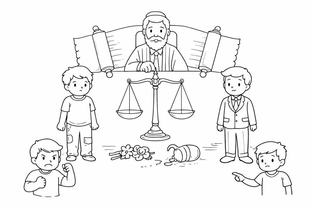 Imagine someone breaks something that belongs to someone else. The judge has to decide who really did it. Even if the person who broke it is poor, the judge still has to be honest and fair.